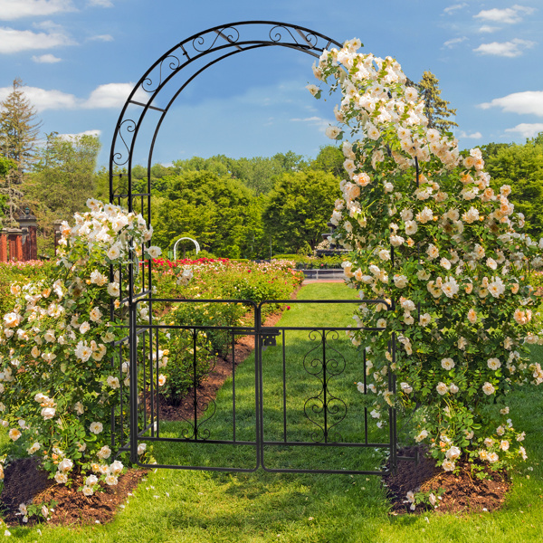 Looking for a trellis that support the vines in your garden? This 134.5*58.5*213cm Arc Roof Double Layer With Door Wrought Iron Iron Arch Courtyard is here to help. Beautifully crafted, it will add style to any backyard or garden while providing plenty of support for your climbing flowers, vegetable plants, rose bushes, and vines. Sturdy iron frame with  powder coated finish is rustproof to offer years of beauty. After being staked into the ground, this trellis is free-standing for fast and easy installation.