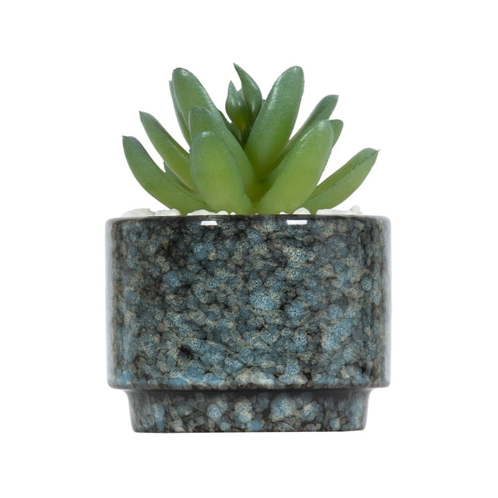 The 3.9" Artificial Crassula Ovata Succulent Plant in Teal Ceramic Pot by is the perfect way to add greenery to your home or office space without the hassle of taking care of a real plant. The plant comes in a porcelain pot that has a reactive glaze applied, providing a one-of-a-kind speckled effect for a handmade feel. This faux succulent adds instant charm to a living room, dining room, entryway, bedroom, office space, and more. Stock up now and save on this money-saving four-pack!